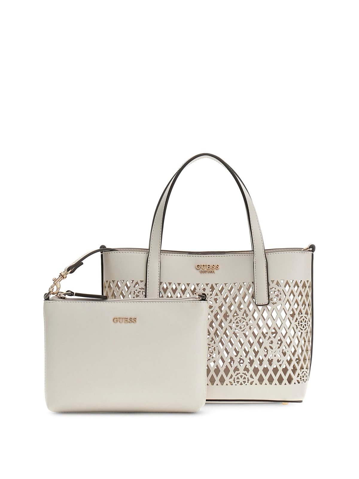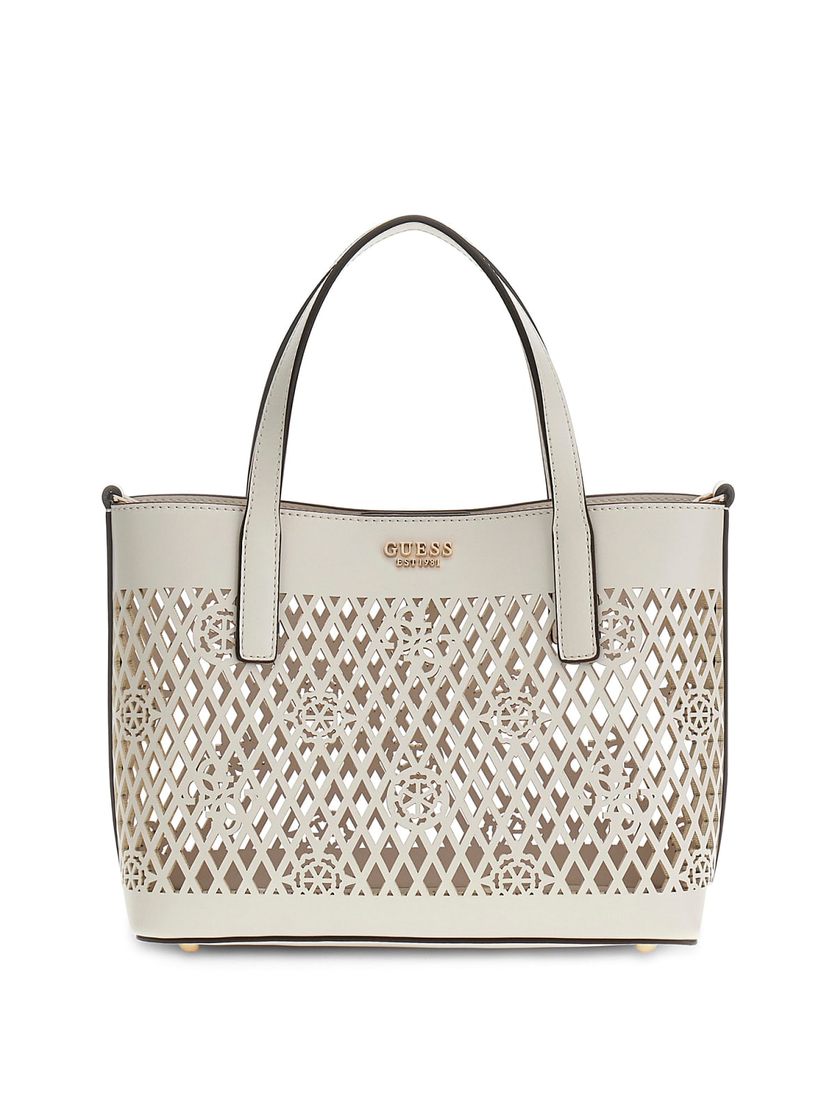 La mini tote Letty 2 in 1 di Guess combina un raffinato esterno tagliato al laser con una pochette interna rimovibile per un'organizzazione quotidiana impeccabile. I doppi manici superiori offrono un trasporto confortevole a mano o al braccio, sia per uscite casual che per look più eleganti. Caratteristiche principali: Nero | Poliuretano | Pochette interna rimovibile | Doppi manici superiori | Esterno tagliato al laser | Logo Guess discreto | Silhouette mini tote | Composizione e cura: Poliuretano