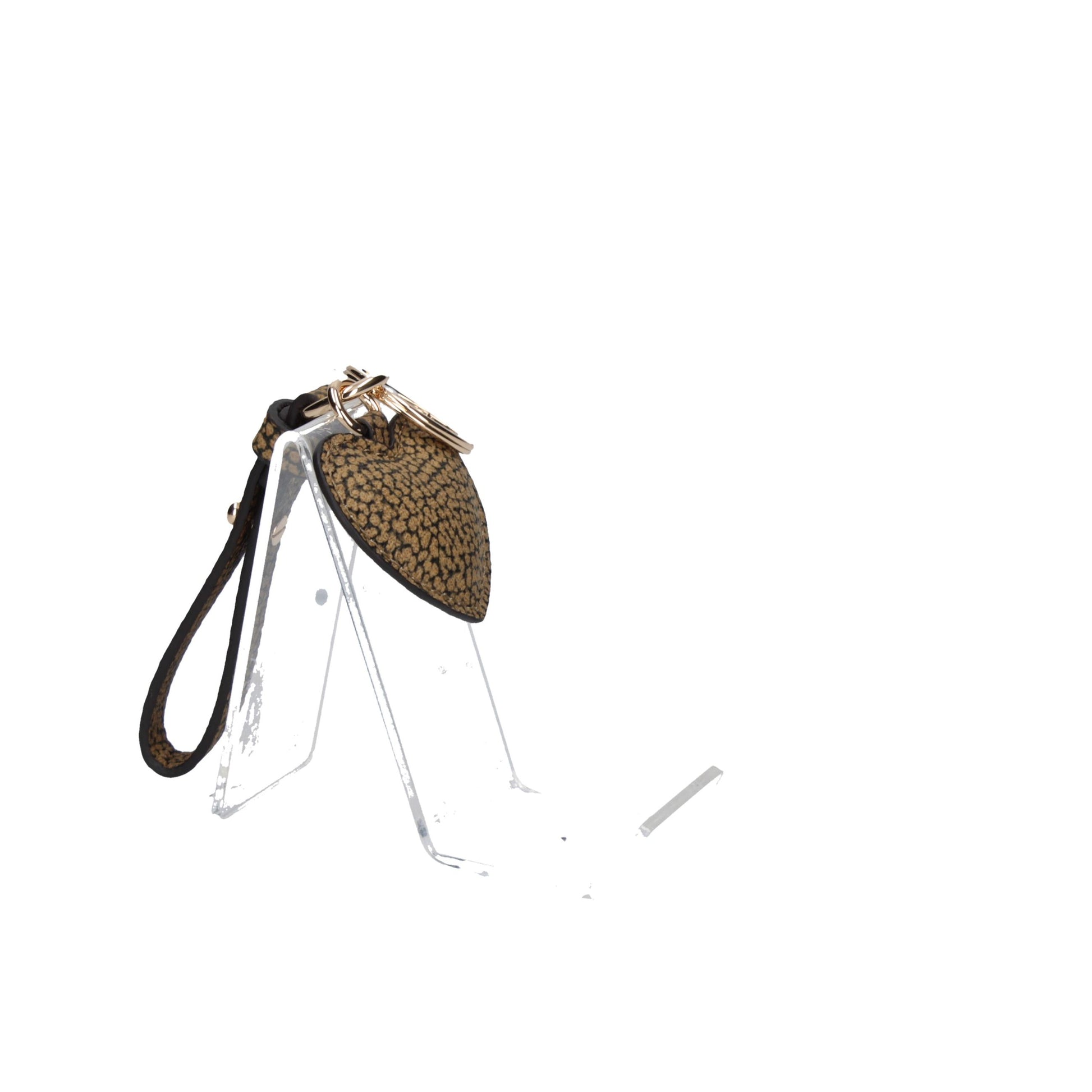 Portachiavi di metallo e tela rivestita OP con ciondolo a forma di cuore con logo. Può essere utilizzato come charm per impreziosire la tua borsa preferita. Galvanica in oro chiaro.